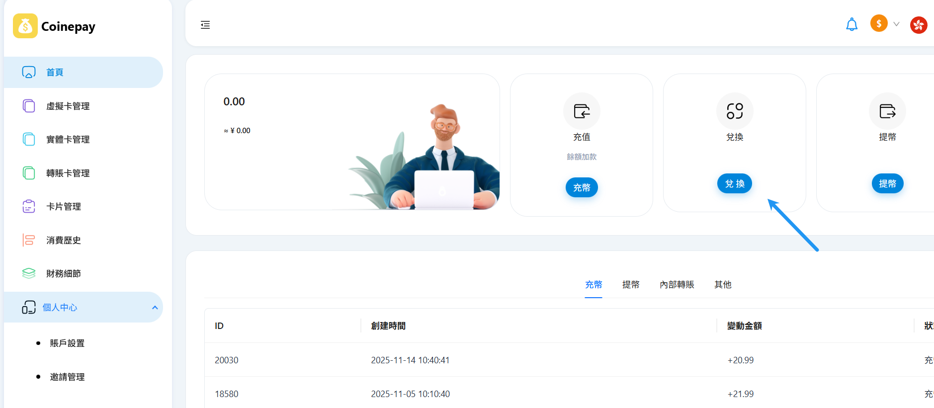 充值完成后,选择兑换